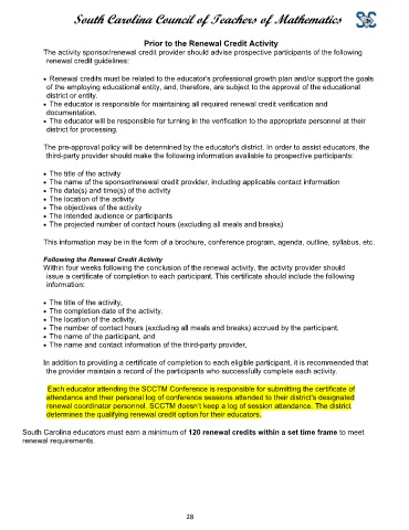 Each educator attending the SCCTM Conference is responsible for submitting the certificate of