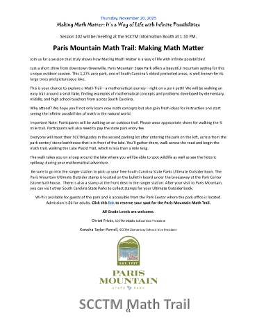 Session 102 will be mee�ng at the SCCTM Informa�on Booth at 1:10 PM.