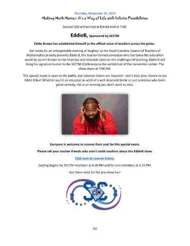 bring his signature humor to the SCCTM Conference in the exhibit hall of the conven�on center. The