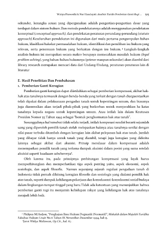 Wahyu Prawesthi & Nur Handayati: Analisis Yuridis Pemberian Ganti Rugi ... 515