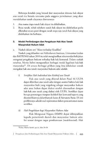 Pengakuan dan Perlindungan Hak Atas Tanah Masyarakat Hukum Adat... 495