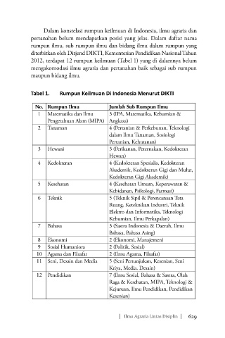tabel 1. rumpun keilmuan di Indonesia menurut dIktI