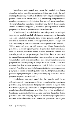 Wiradi (2002) mendefinisikan metode penelitian sebagai