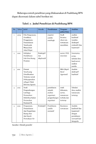 Tabel. 7. Judul Penelitian di Puslitbang BPN