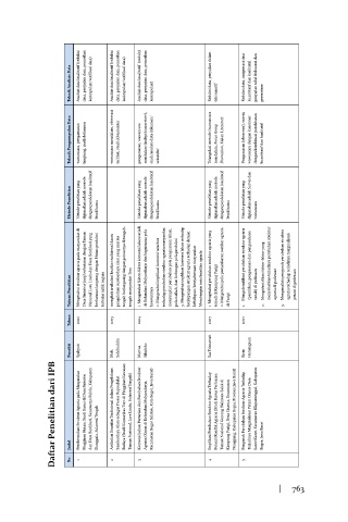 Daftar Penelitian dari IPB Judul Pembentukan Struktur Agraria pada Masyarakat Pinggiran Hutan: Studi Kasus di Desa Sintuwu dan Desa Berdikari, Kecamatan Palolo, Kabupaten Donggala, Sulawesi Tengah Artikulasi Kearifan Tradisional dalam Pengelolaan Sumberdaya Alam sebagai Proses Reproduksi Budaya (Studi Komunitas Toro di Pinggiran Kawasa