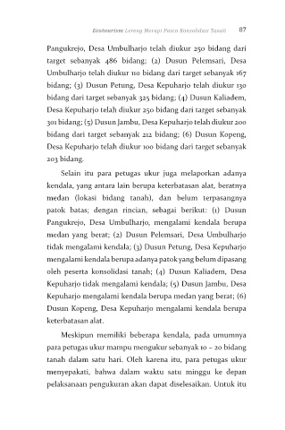 bidang dari target sebanyak 212 bidang; (6) Dusun Kopeng,