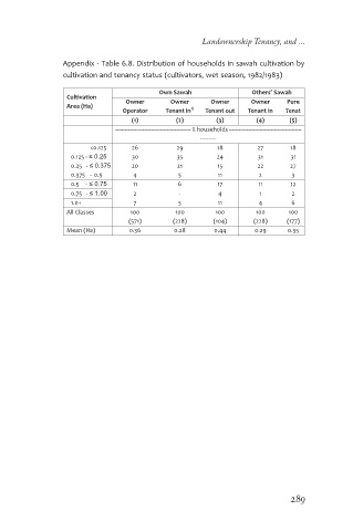 Appendix - Table 6.8. Distribution of households in sawah cultivation by