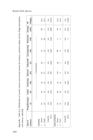 Appendix - Table 6.9. Distribution of sawah owners and of non-owners by tenancy contracts status and by village (tennant-in,