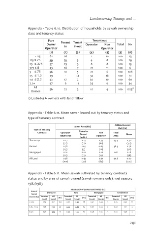 Appendix - Table 6.11. Mean sawah leased out by tenancy status and