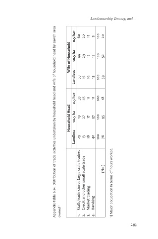 Appendix-Table 6.14. Distribution of trade activities undertaken by household head and wife of household head by sawah area