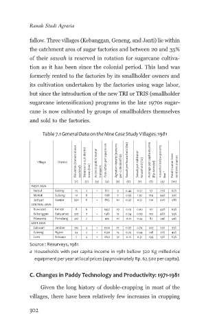 Table 7.1 General Data on the Nine Case Study Villages :1981