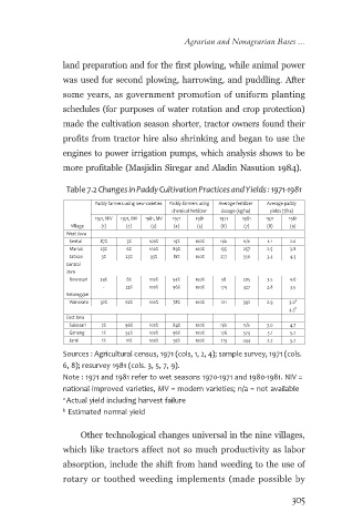 Table 7.2 Changes in Paddy Cultivation Practices and Yields : 1971-1981