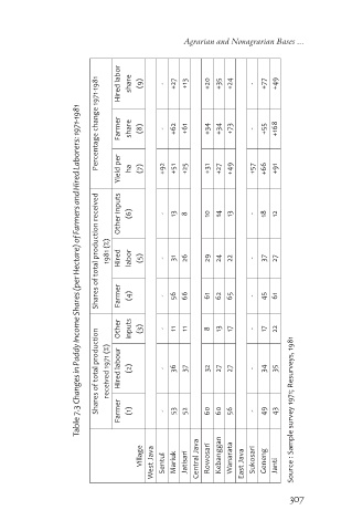 Table 7.3 Changes in Paddy Income Shares (per Hectare) of Farmers and Hired Laborers: 1971-1981