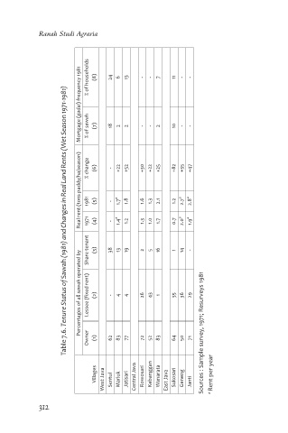 Table 7.6. Tenure Status of Sawah (1981) and Changes in Real Land Rents (Wet Season 1971-1981)