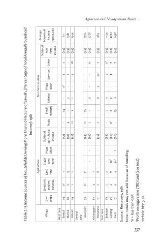 Table 7.13 Income Sources of Households Owning More Than 1.0 Hectare of Sawah, (Percentage of Total Annual Household