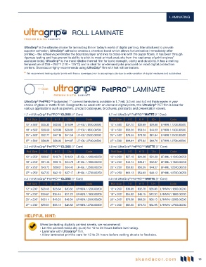 printers. Skandacor highly recommends using UltraGrip film with hot roll laminators.