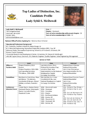 Offices or Chapter President, 2013- Legislative Action Chair, National Area V Director