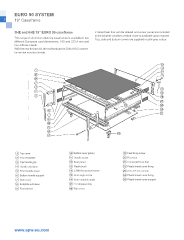 EURO 90 SYSTEM 8 19” Caseframe 3HE and 6HE 19” EURO 90 caseframe 2 raised feet that can be altered and a rear panel are included in the kit while a bottom vented cover is available upon request. This range of aluminium desk top caseframes is available in two Top, side and bottom covers are supplied in pale grey colour. different European card dimensions, 100 and 233,4 mm and four different depth. With the rear tie bars kit, the motherboard or DIN 41612 connec- tor can be mounted inside. 1 Top cover 10 Bottom cover (plain) 19 Feet fixing screw 2 Front endplate 11 Handle screw 20 Rear feet 3 Top handle grip 12 Rear panel 21 Concealed front feet 4 Handle extrusion 13 Plastic bush 22 Plastic insert cover fixing 5 Front handle cover 14 2.5MA front panel screw 23 2.9 x 9.5 TS x screw 6 Bottom handle support 15 Rear angle screw 24 Plastic insert cover fixing 7 Side cover 16 Rear endplate angle 25 Plastic insert cover support 8 Endplate extrusion 17 2.5 strapped strip 9 Front tie bar 18 Side cover www.apw.eu.com