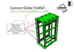 Cannon Globe Trotter SHOCK ATTENUATED INNER FRAME MOUNTING INNER FRAME CONNECTED TO CORNER POSTS VIA SHOCK ATTENUATED MOUNTS