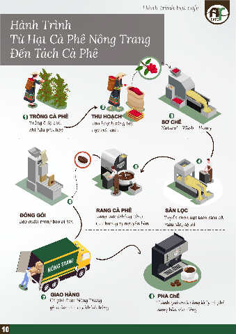 2 1 TRỒNG CÀ PHÊ THU HOẠCH 3 SƠ CHẾ 4 5 6 RANG CÀ PHÊ SÀN LỌC ĐÓNG GÓI GIAO HÀNG PHA ChẾ 7 8 10
