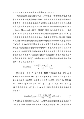 預測能力,故本研究將預期股東權益報酬率作為解釋變數納入股價報