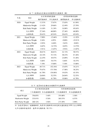 表 7:投資組合在績效回測期間年化報酬率 (續)