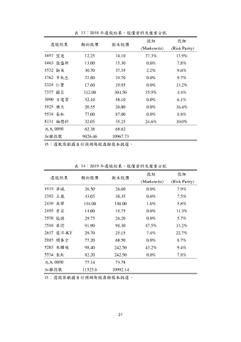 表 14:2019 年選股結果、股價資料及權重分配