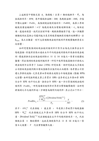 盤價,得出預測的現金股利殖利率。研究中使用每股盈餘估計發放之