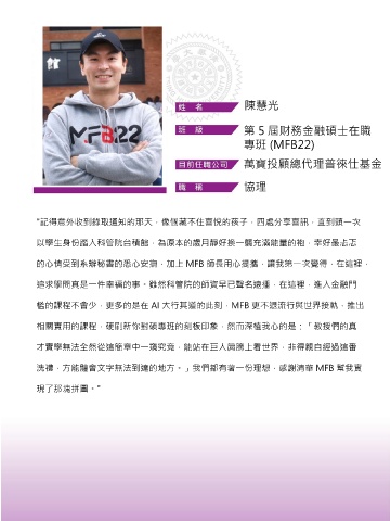 洗禮,方能體會文字無法到達的地方。」我們都有著一份理想,感謝清華 MFB 幫我實
