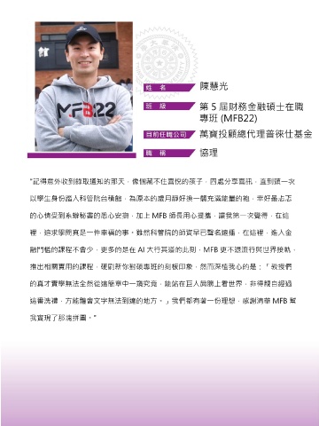 的心情受到系辦秘書的悉心安撫,加上 MFB 師長用心提攜,讓我第一次覺得,在這