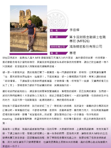 動。清大 MFB 讓我不只變得更專業,也讓我更勇敢去面對未來的挑戰。真的很開心能成為這個大