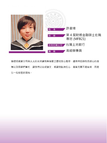 這裡很感謝父母與太太的支持讓我無後顧之憂地放心進修,還有林哲群院長細心的指