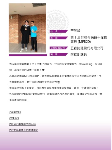 各位親愛的MFB20的優秀同學們,能夠認識各行各業的菁英,是讀書之外的收穫,恭