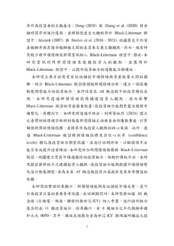 究較少將市場情緒或新聞資訊納入 Black-Litterman 模型中,因此,本