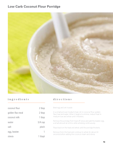 In a small pot over medium heat, stir in coconut flour, golden flax meal and water. When it begins to simmer, reduce heat to medium-low and whisk until it thickens.