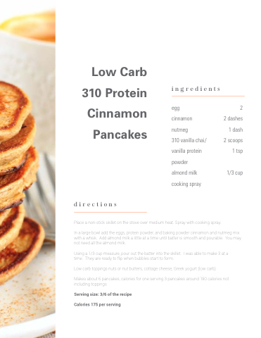 Low Carb 310 Protein Cinnamon Pancakes