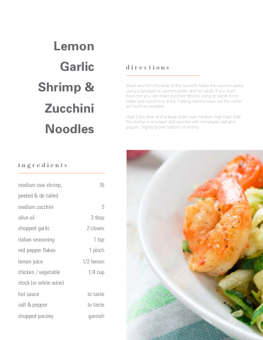 Heat 2 tbs olive oil in a large skillet over medium-high heat. Add the shrimp in one layer and sprinkle with Himalayan salt and pepper. Slightly brown bottom of shrimp