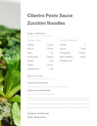 Add cilantro pesto sauce and any other seasoning and garnish for taste example nuts cilantro etc.