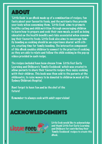 Little Cook would like to acknowledge and thank Little Feet Early Learning and Childcare for contributing their ‘Family Cookbook’ recipes to create this eBook.