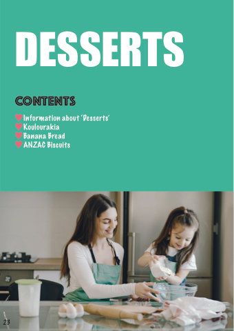 DESSERTS CONTENTS ♥ Information about ‘Desserts’ ♥ Koulourakia ♥ Banana Bread ♥ ANZAC Biscuits 23