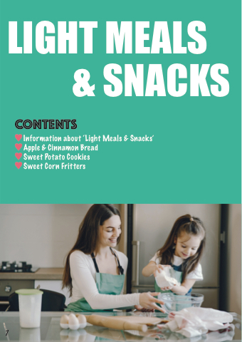 LIGHT MEALS & SNACKS CONTENTS ♥ Information about ‘Light Meals & Snacks’ ♥ Apple & Cinnamon Bread ♥ Sweet Potato Cookies ♥ Sweet Corn Fritters 7