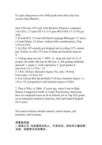 1.In USA;: 1/3 pass HS 1/3 (1/9) pass BS or BA 1/5 (1/45) get