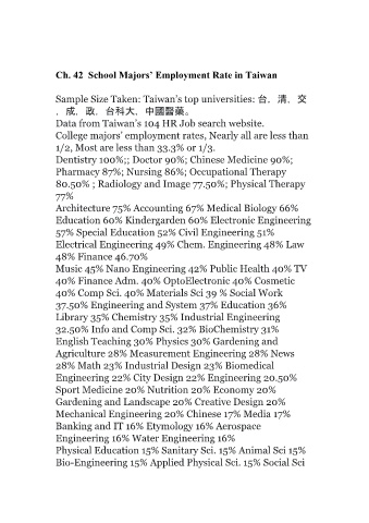 Ch. 42 School Majors’ Employment Rate in Taiwan