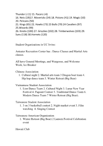 16. Nets (19)17. Mavericks (34) 18. Pistons (41) 19. Magic (50)