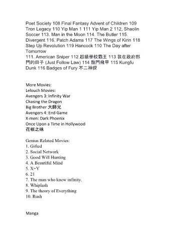 Divergent 116. Patch Adams 117 The Wings of Kirin 118