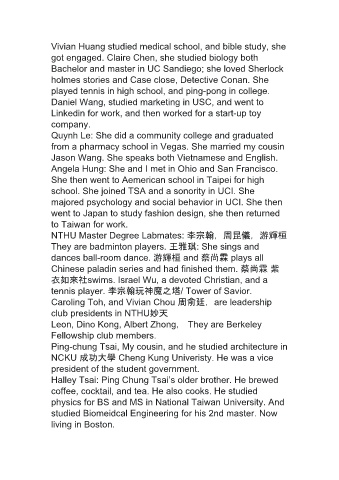 got engaged. Claire Chen, she studied biology both