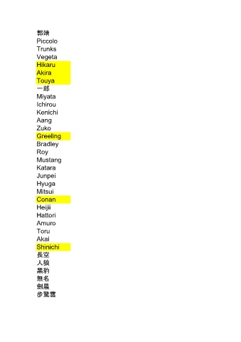 郭靖 Piccolo Trunks Vegeta Hikaru Akira Touya 一郎 Miyata Ichirou Kenichi Aang Zuko Greeling Bradley Roy Mustang Katara Junpei Hyuga Mitsui Conan Heijii Hattori Amuro Toru Akai Shinichi 長空 人狼 黑豹 無名 劍晨 步驚雲