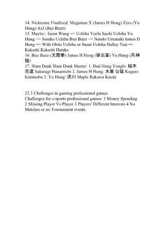 Hung => Sasuke Uchiha Buz Buzz => Naruto Uzumaki James H
