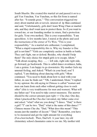 and said, "Unfortunately, girls don't learn Wing Chun or martial