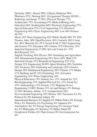Dentistry 100%;; Doctor 90%; Chinese Medicine 90%;
